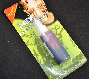 Om bloed over een groot gebied te laten druipen, wordt de bloedspray vanaf een afstand van ongeveer 15-30 cm op het gezicht en / of lichaam gesproeid. Houd je ogen gesloten. Als de verstuiver heel voorzichtig wordt ingedrukt, kunnen individuele bloeddruppels ook worden geaccentueerd. Gebruik alleen kleding die bloederig mag worden, omdat permanente vlekken kunnen optreden.