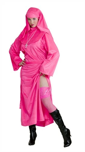 Sexy non pink de luxe, het grappige kostuum als een heilige geest van de kerk voor carnaval, theater, entertainment, halloween, event of themafeest. Het kostuum bestaat uit een jurk, een kap en een riem. De monnik en het kruis zouden goed bij het kostuum passen en zijn apart verkrijgbaar.